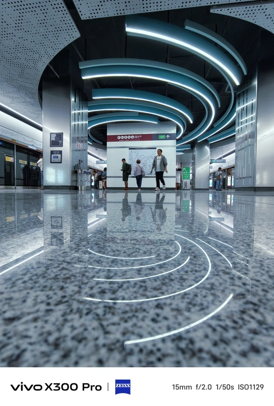 站在这方圆形的“时光漩涡”里, 看蓝白灯带像被按下无限循环键, 把地铁的风都卷成了流动的光。 脚下是镜面铺就的“另一个宇宙”, 和头顶的漩涡遥遥呼应, 仿佛下一秒就能顺着纹路滑进科幻电影里。 🚇13号线深大站 调色参数仅供参考👇 色温:-25 锐化:+3 清晰:+5 去雾:+5 🔵Shot on vivo X300 Pro