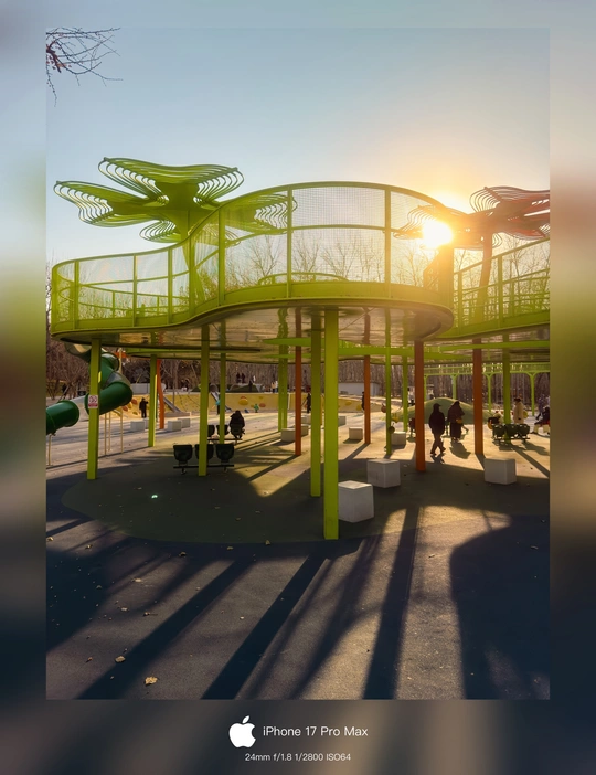 冬日即使严寒 四得公园里的人流还是不少 西北角的游乐场附近 还是挺出片的 趁着下午光影感舒服的时候 咔咔拍几张📸📸📸 📷:IPhone 17 Pro Max📱➕铁头手机摄影套件 📍:北京市|朝阳区|四得公园