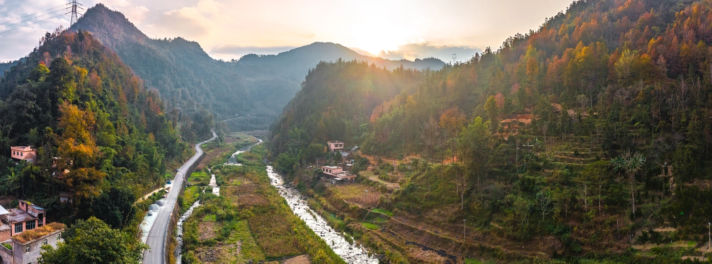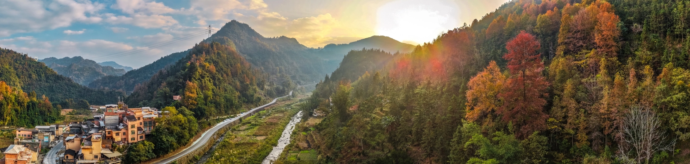 2025 年 12 月 10 日,贵州省黔西南布依族苗族自治州望谟县郊纳镇纳怀村,金黄红艳的枫香红叶成了这个季节最亮丽的风景。 草木葱茏,枫香树满树绿叶早已换作“黄衫”,给冬日增添一抹温暖的色调,漫山铺盖金黄一片,呈现红、黄、棕等不同色彩。枫叶流丹,溪水潺潺,鸟语相伴,环境清幽,暖冬时节醉美的风景。