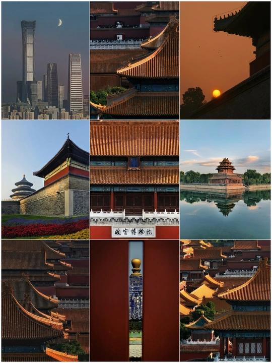 当CBD的玻璃幕墙碰上月牙,红墙黄瓦正接住落日的余温——这是北京,一半是云端的现代锋芒,一半是六百年的檐角流光。天坛的穹顶吻过花海,角楼在太液池里复刻成画,朱门铜钉裹着时光的釉色,连飞檐的弧度里都藏着岁月的平仄。从故宫的脊兽到国贸的天际线,老砖与新楼叠成这座城的褶皱,每一道都是历史与当下的轻语:你好,北京,是晨钟与霓虹的和鸣,是一眼越千年的心动。