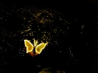 幽邃夜幕中,流光蝶翼轻触水面,漾开一圈碎金。虚实倒影交织,恍若时光在此刻驻足,沉入一场静谧的幻梦。