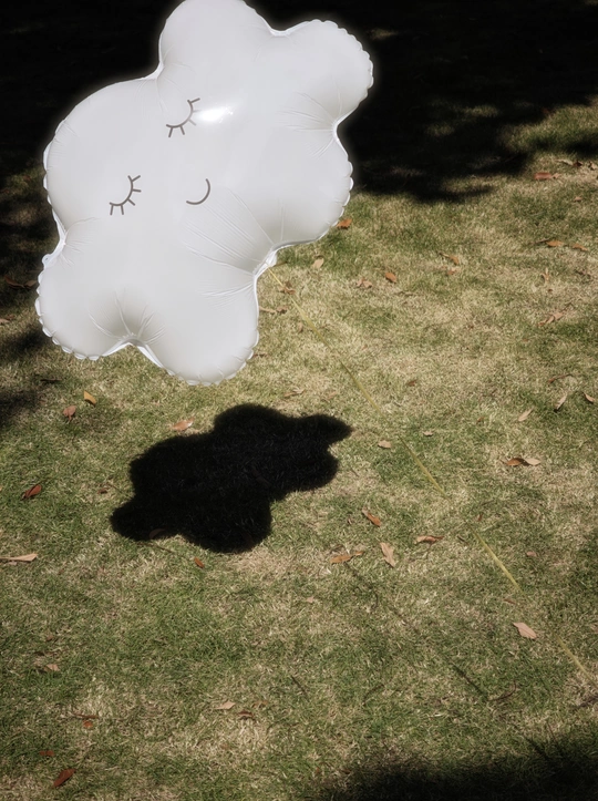 白绒云团静卧草间,睫边笑意漾开,光影斑驳处温柔悄然漫溢。