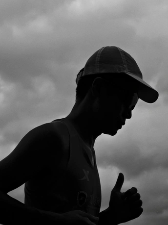 阴云低垂,跑者以剪影划破沉寂的天幕。每一次抬膝都是对地心引力的反抗,在黑白世界中奔向未竟的远方。
