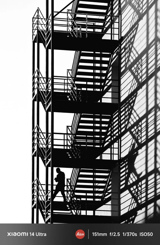 钢架梯阶与墙面影子的几何韵律刚柔相济,似一首梦幻狂想曲;人物剪影如灵动音符点缀其中,在光影的交织里,抒写着动人心弦的乐曲……