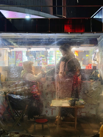 冬夜里寒风肆虐,在看到塑料帘下这温暖的一幕便不觉得冷了,温柔且又暖