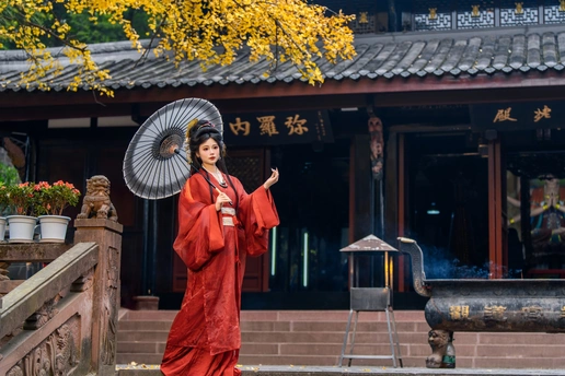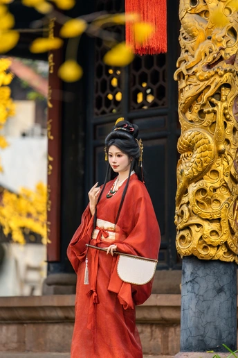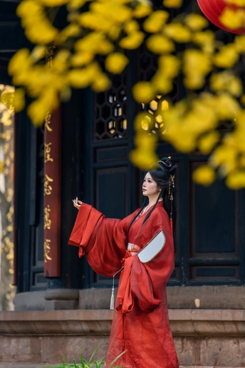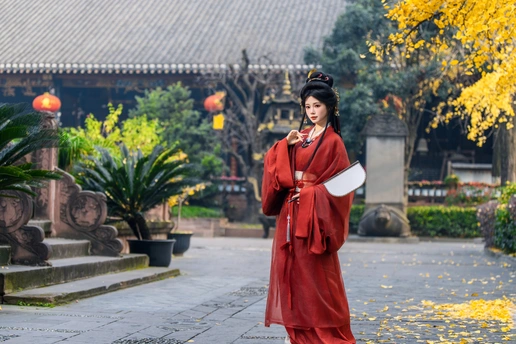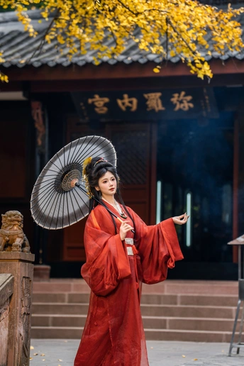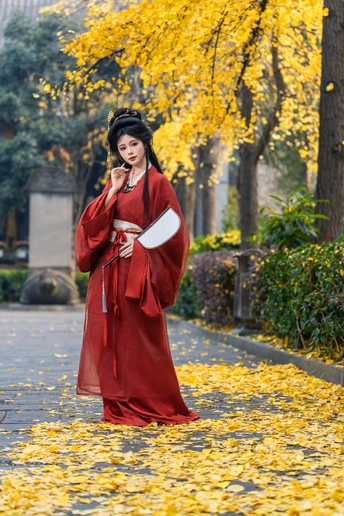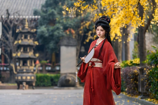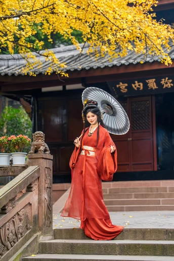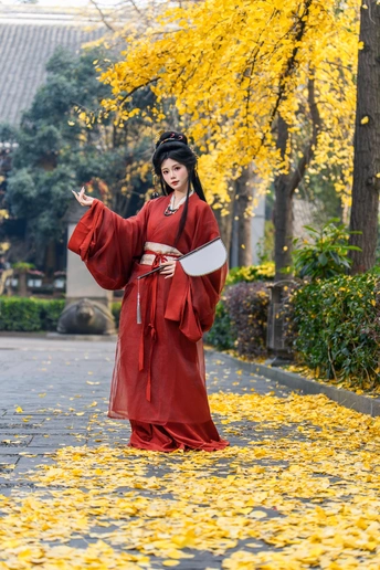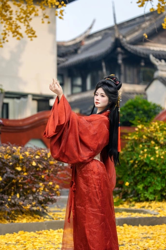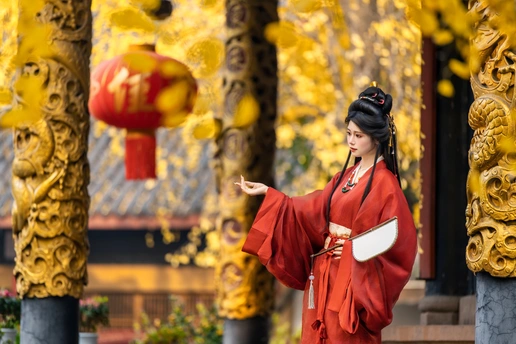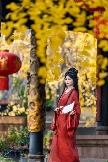 一叶一秋声, 一步一倾城。 青羊宫内银杏黄, 美人如画,画不及人。