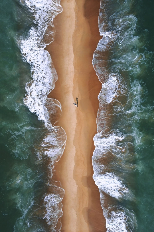 沙径向海,浪影随行,这一刻,世界只剩潮声与自己