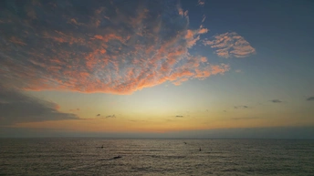 东海岸晨曦,天空挂彩云。