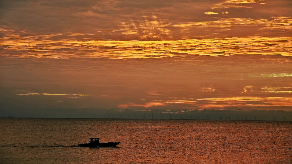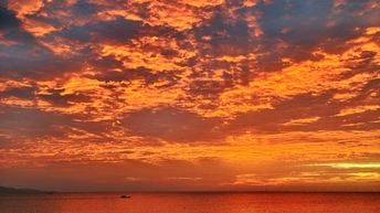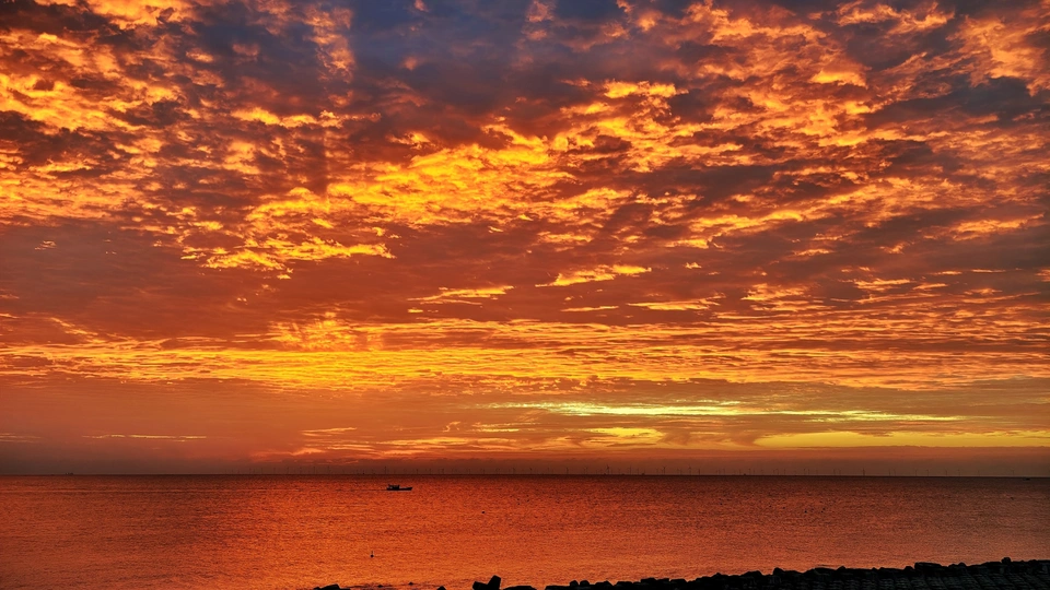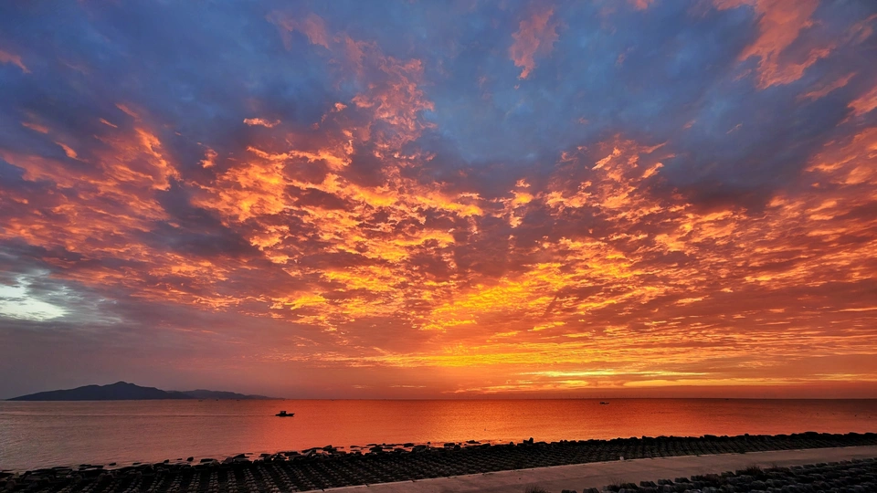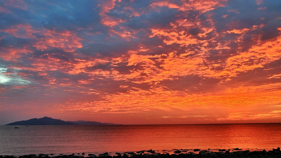 这一场日出火烧云颇为壮观,光芒涌动、云霞炽热。