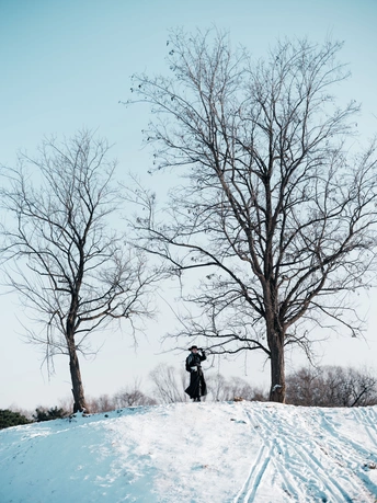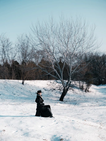 连风都裹着故事感的雪景人像 📸FUJIFILM GFX100 II + GFX100S / GF500mm + GF110mm F2 🎞️Classic Chrome 在这样的一个覆盖着厚厚积雪又如此开阔的地方,仿佛真的是从大兴安岭走来,带着高级与清冷。 利用GF500mm长焦拍出强烈的纵深和空间压缩感,利用GF110mm F2,保留大部分留白的情况下,也能保留人物的细节,不同景别和不同构图,共同完成这一组照片,让叙事性和高级感充满画面。