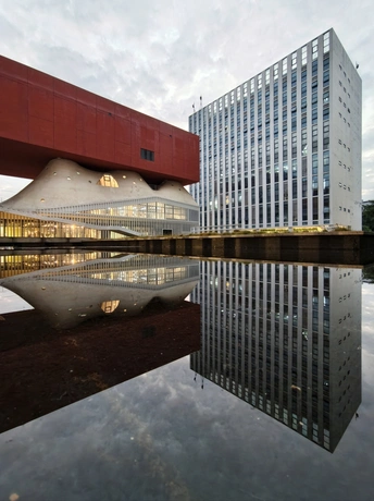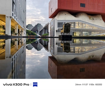 坏了,在深圳闯进超现实建筑幻境··· 镜面水泽将建筑的美学对折,不规则的流线型建筑肌理,天光漫过云层。 为建筑镀上温柔的轮廓, 倒影在水中漾开虚实边界。 深圳新锐美术馆 @6号线阳台山 (建议打车或自驾,离地铁站还有点远) 调色参数仅供参考 色温:-5 锐化:+3 清晰:+5 去零:+5 增强:+5 Shot on vivo X300 Pro