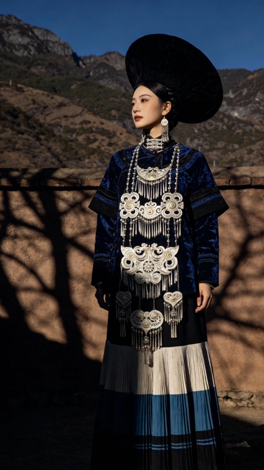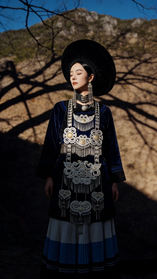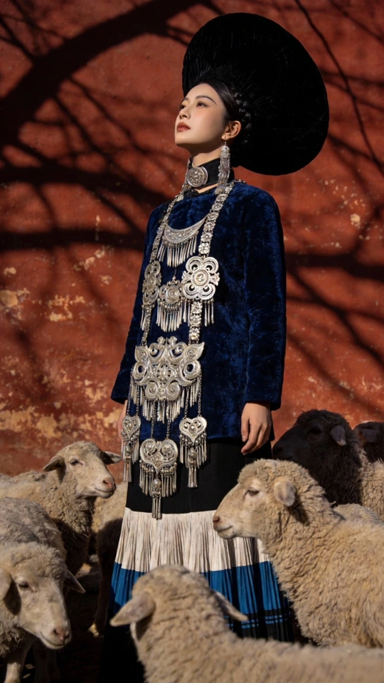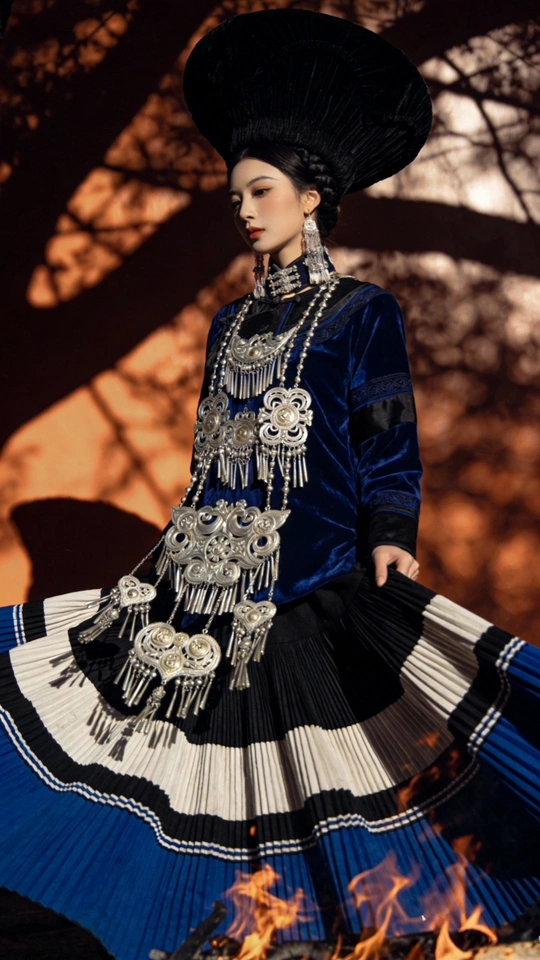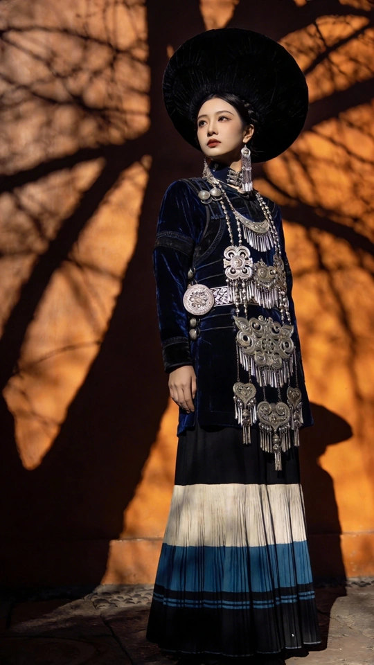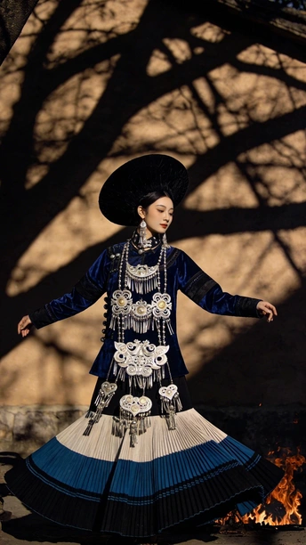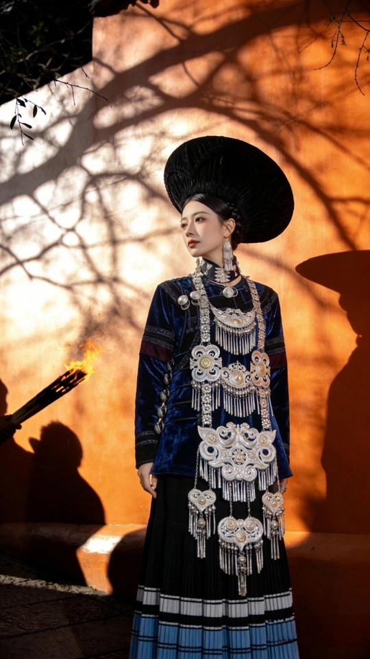 树隙把阳光裁成细碎的星 落在深蓝衣襟,与银白纹路纠缠 风走过时,银饰轻颤 不是声响,是古老的叙事 顺着流苏,缓缓流淌 宽檐帽压下白日的喧嚣 眉骨间,是岁月磨平的棱角 目光沉在阴影里,又浮起 像湖底的月光,藏着不慌不忙的从容 火把在掌心燃烧 橘红的光,舔舐青石板的纹路 照亮脚下的路,也穿透胸膛 把暗夜里的迷茫 焐成一束,不肯熄灭的信仰 光与影的缝隙里 所有沉默,都在生长力量