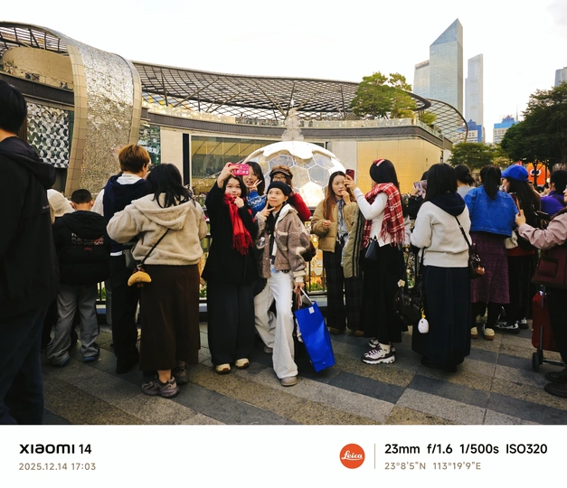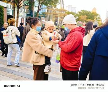 当圣诞元素融入城市商圈,暖光与装置勾勒出节日氛围,而真正让场景鲜活的,是穿梭其中的人群——亲子互动的温情、驻足定格的兴致、步履匆匆的日常,在仪式感与烟火气的交织中,展现都市商圈的多元面貌,也记录下节日里最真实的人间温度。