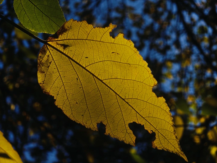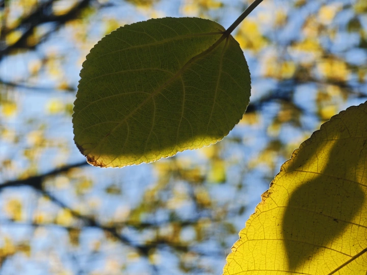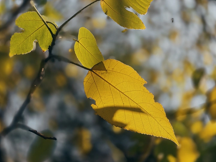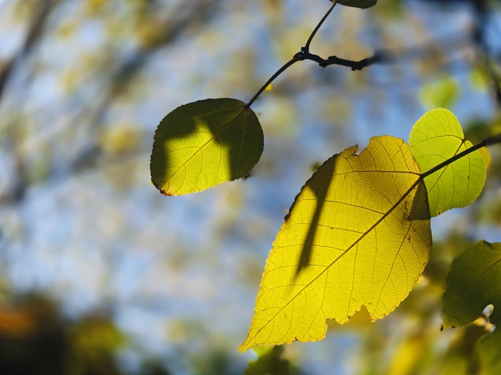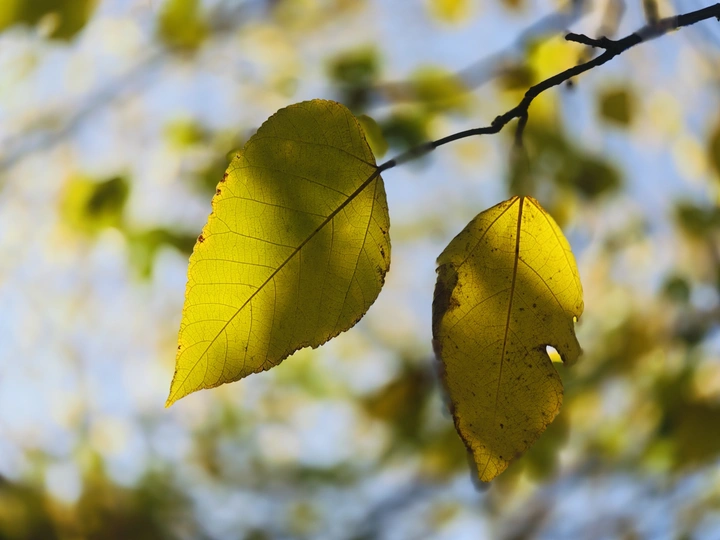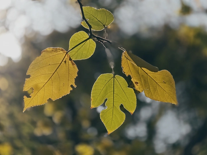 在路边一丛树叶上看到好看的投射光斑在微风中摇摆晃悠变幻着各种姿色使叶面顿时有了灵魂出窍的故事感。