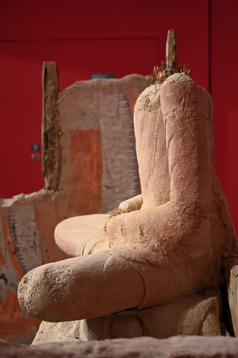 分享一个达玛沟小佛寺遗址复原,材质:泥土、石膏、纤维等材料,尺寸:等大复制 达玛沟小佛寺位于新疆和田地区策勒县达玛沟乡,是世界上最小的古代佛寺,面积仅4平方米,建于南北朝时期(距今约1500-1800年),2000年由牧童发现。中心泥塑莲花座佛像,头部与双手残缺。四周绘有精美壁画,其壁画是典型的于阗画派风格,其建筑、雕塑和壁画保存完好,具有典型的犍陀罗艺术风格,印证了唐玄奘《大唐西域记》中古于阗国“佛塔林立,僧众云集”的记载。2007年建成遗址博物馆对外开放,陈列108件珍贵文物,包括千手观音壁画等。2013年被列为全国重点文物保护单位,是研究西域佛教文化的重要遗址。