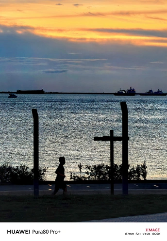 黄昏的海,染上天边的余晖,独行的身影,是归途,也是诗行。