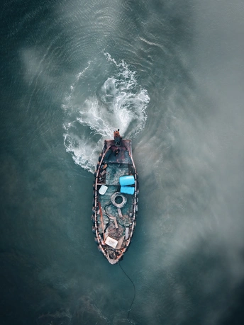 孤舟破开蓝浪,驶向海的深处(创意类)