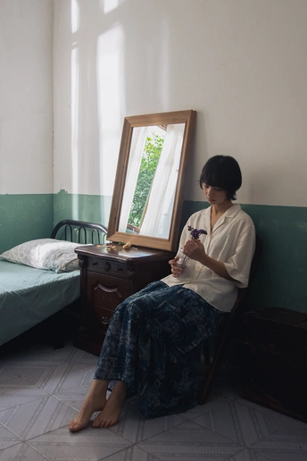 午后的光裁了层软边,斜斜吻过白衬衫的褶皱,把棉麻的肌理浸得温软。蓝染裙的肌理沉在影里,光斑却偏要勾出几缕洇开的蓝,像把旧时光的蓝墨轻轻晃了晃。 出镜:一一 摄后:本人