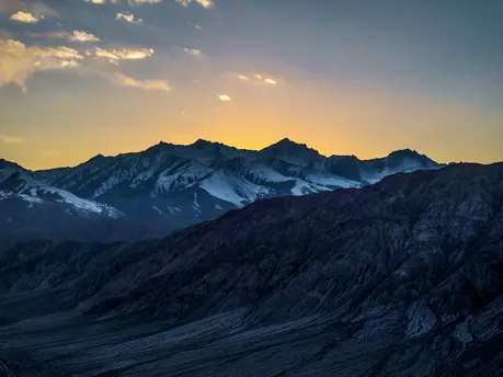 在帕米尔高原,太阳到了山的那一边
