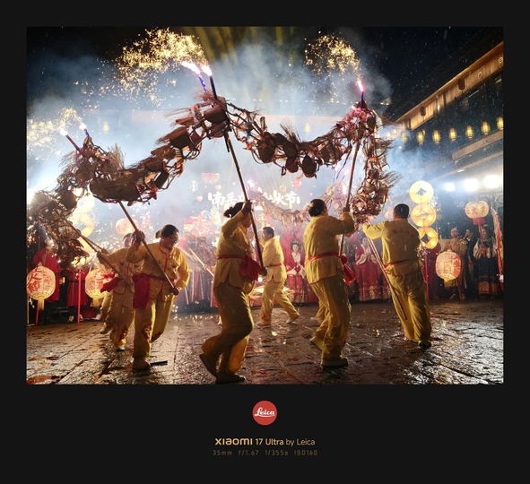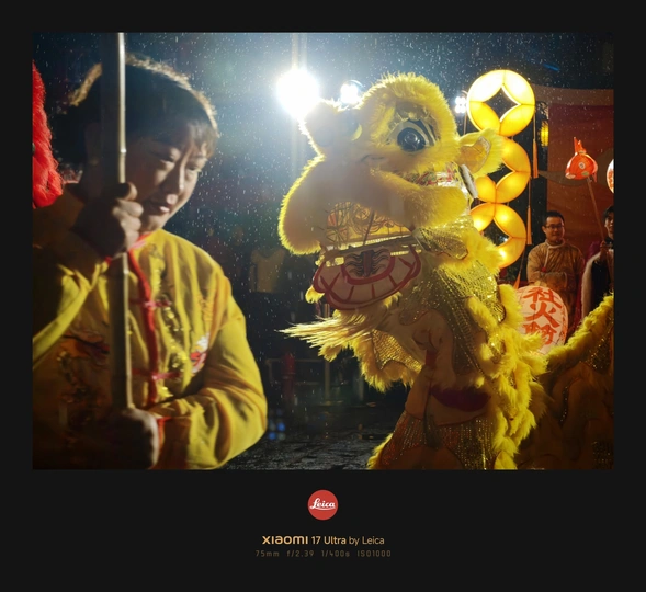 龙灯舞狮在夜色中翻腾,变脸绝活瞬间切换喜怒,高跷社火队伍,穿行如流动的灯火 零点的钟声敲响,千年非遗与崭新时光在此相遇 旧岁所有的遗憾,也都化作新年的第一缕光。 Xiaomi 17 Ultra by Leica