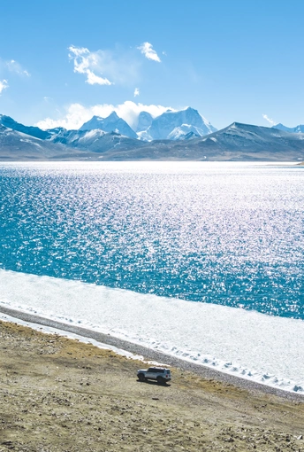 又到了西藏最美蓝冰普莫雍措开始结冰的季节,湖岸已经开始了冰推,雪山湖泊的画卷来了。