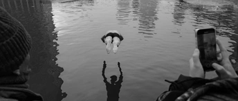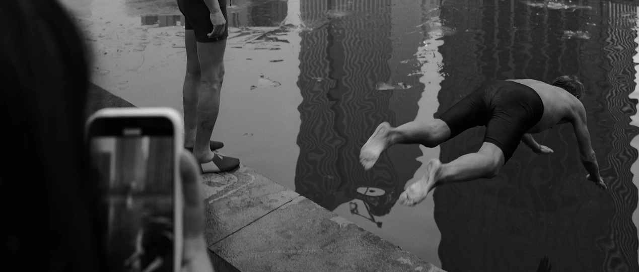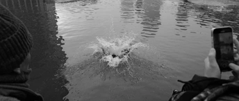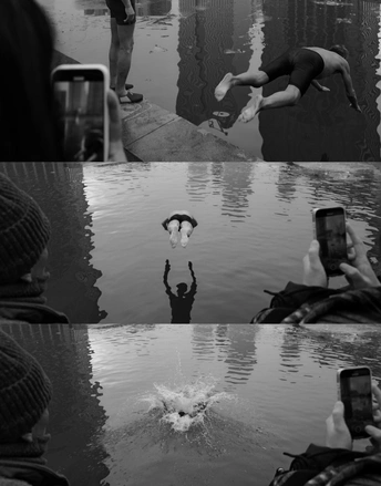 凛冬的海河畔,他纵身跃向水面,镜头定格下这无畏的瞬间