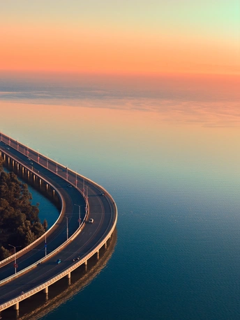 在昆明环湖滇池自驾时,偶然发现这座桥梁,并特意选择了一个日出来拍摄。