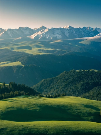 五月的喀拉峻,雪山下的草原草长莺飞,远看波澜起伏的草原像丝绸般润滑