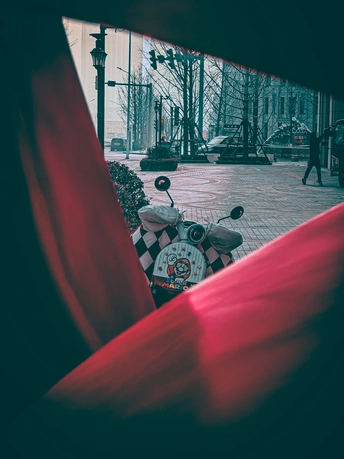 手机拍的一组家门口停了一台配色挺有意思的车红黑金的配色