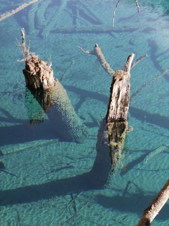 在九寨沟记录下了清澈湖底的沉木,无比震撼