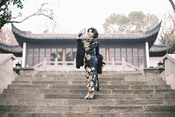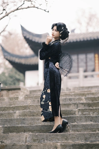 《石阶与青瓷的叙事诗》 疏影漫过银杏空枝 她缓步走下民国石阶 鬓边霜色与落叶同寂 旗袍开衩处泄露一脉冬光 镜头俯身拾取铜镜前未竟的私语 枯山水在院墙默写逝水年轮 她回望时—— 整座清凉山在绢帛上 褪成一张湿润的负片 模特:清醒 摄影:许摄 器材:佳能R62+50 1.4+85 1.4