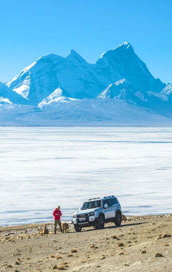 一人一车一狗来到了冬季的卓木拉日雪山和多情湖!