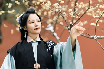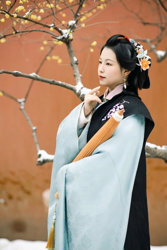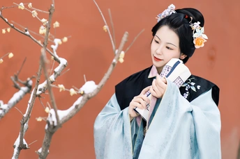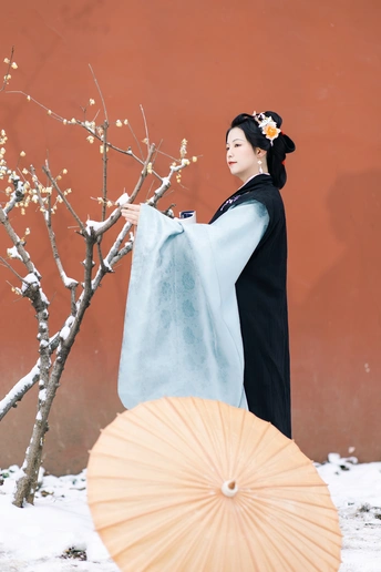 《甲辰腊月游孝陵逢雪》 金陵忽降琼妃至,先著梅花浅淡妆。 十万朱砂皴赤壁,三千白羽覆云廊。 风回绛雪翻霓袖,人与红墙共玉光。 欲问春期何日近,寒香已透碧衣裳。 模特:疯车车 摄影:许摄 器材:佳能R62+85 1.4