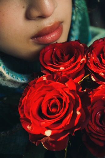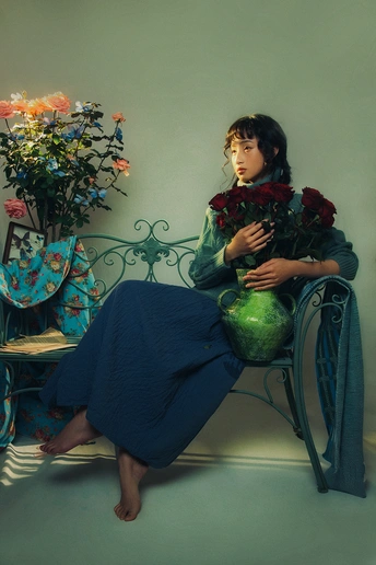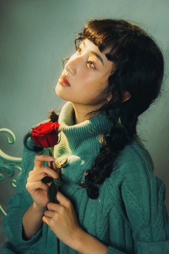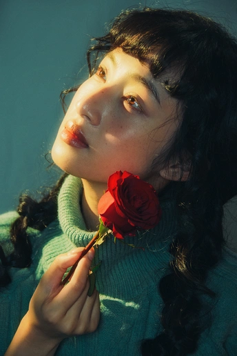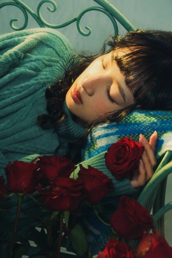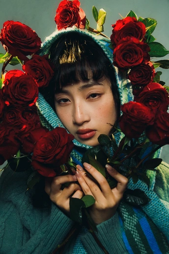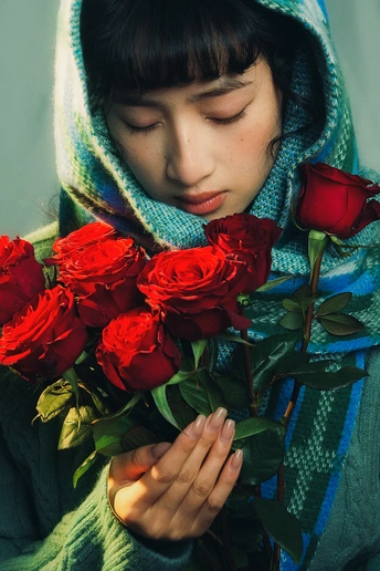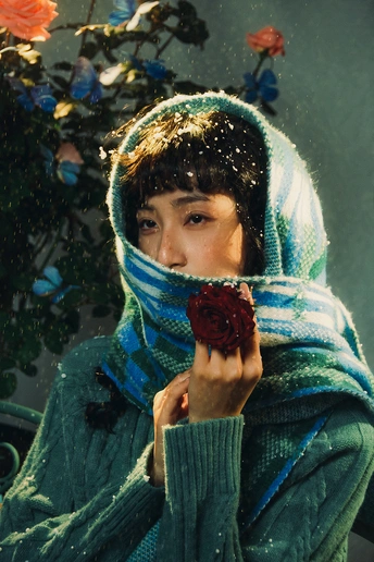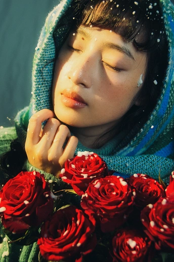 雪粒轻轻落在针织的纹路里,也落在红玫瑰的瓣尖。 冷调的绿裹着热烈的红,像冬日里不肯熄灭的温柔。 风掠过发梢,玫瑰的香混着雪的清冽, 原来冬天的浪漫,是安静的,是带着破碎感的, 是把热烈藏进清冷里,把温柔揉进风雪中。 一捧红玫瑰,一身暖针织, 便接住了整个冬天的诗意与浪漫。 出镜:吱吱 带拍:秋如冬