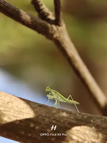 午后的阳光穿过枝叶,在树干上落下斑驳的光影。一只小螳螂正踮着脚,小心翼翼地探索眼前的世界。它的翅膀还带着嫩绿色的纹路,细得像丝线的触角轻轻晃动,仿佛在聆听风穿过林间的声音。 🟠𝗦𝗵𝗼𝘁 𝗼𝗻 𝗢𝗣𝗣𝗢 𝗙𝗶𝗻𝗱 𝗫𝟵𝗣𝗿𝗼