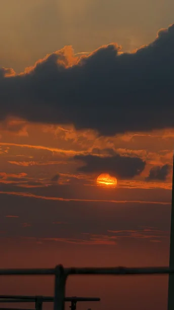 九月傍晚的夕阳穿过层云,橙红暖光为天空晕开渐变的绒色,栏杆的剪影框住这幕温柔,让黄昏的浪漫在镜头里定格成诗。
