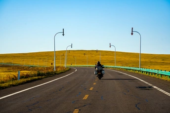 当公路劈开金色草原,雪标杆便成了天地间的视觉锚点。它们笔直地伸向蓝天,红白相间的警示色,在暖黄的草甸与澄澈的晴空之间划出明快的节奏。远处的车影正沿着标杆指引的轨迹前行,每一根标杆都是旅途中的路标,也是草原写给远方的信。在这纯粹的天地里,草原的辽阔与雪标杆的坚守,共同织就了一段关于奔赴与守护的公路诗篇。