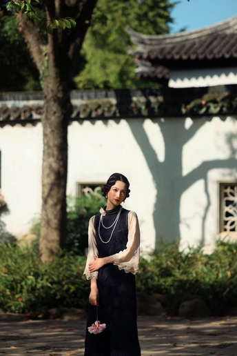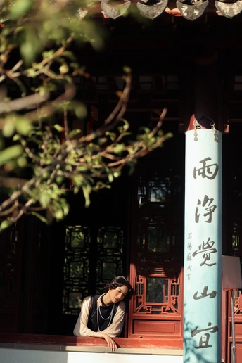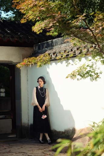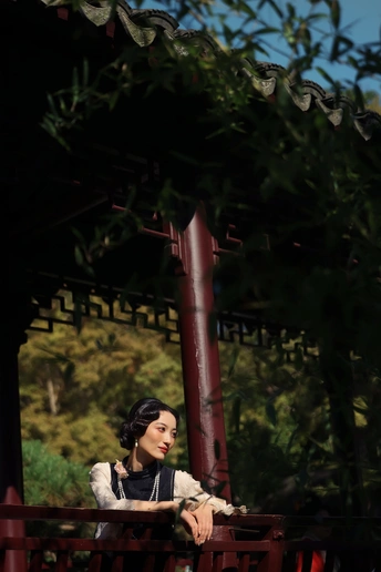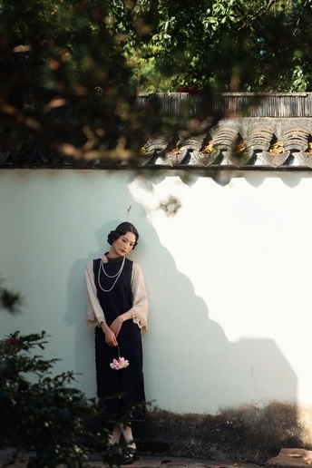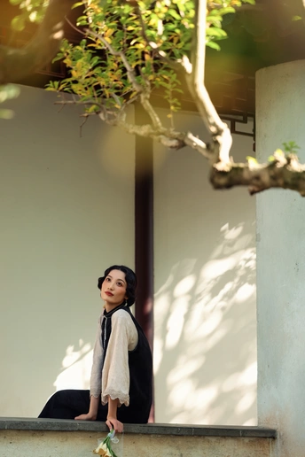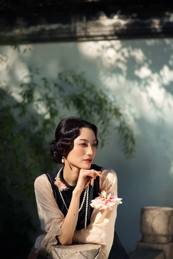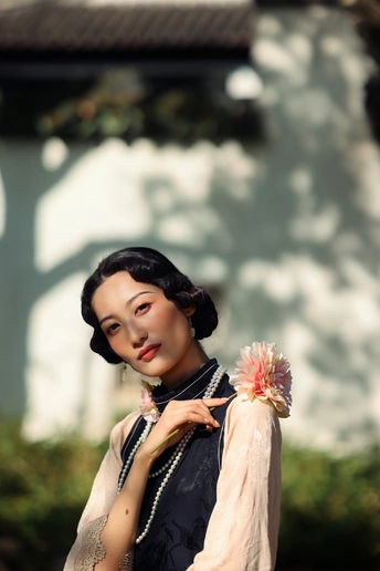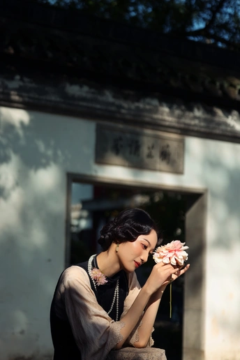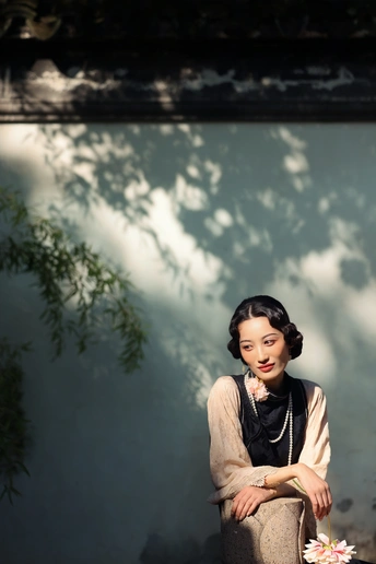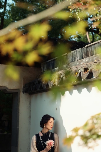 ? 作品心得分享 1. 创作思路 这组作品以“民国江南大小姐”为核心设定,在苏州园林的白墙黛瓦、花影窗格中,用光影塑造出旧时光的朦胧感。 我选择了黑杏撞色的复古旗袍搭配珍珠项链,造型上用手推波纹发型和柔雾感妆容,强化了民国氛围感。 2. 拍摄巧思 - 光影利用:特意选了上午的侧逆光,让树叶的斑驳影子落在墙面和人物身上,制造“一步一影”的层次,让画面更有故事感。 - 场景互动:让模特轻靠白墙、手持花枝、低嗅花香,用松弛的肢体语言传递“大小姐游园”的慵懒与温柔,避免摆拍的生硬感。 - 构图留白:大量运用园林的留白美学,用屋檐、树枝做前景框住人物,让画面既有中式雅致,又突出了人物的柔美。 3. 情绪表达 我希望通过镜头传递的不只是“美”,更是一种民国江南的生活氛围感——不是刻意的复古复刻,而是让观者仿佛能感受到当时的风、阳光的温度,以及大小姐安静又细腻的情绪。