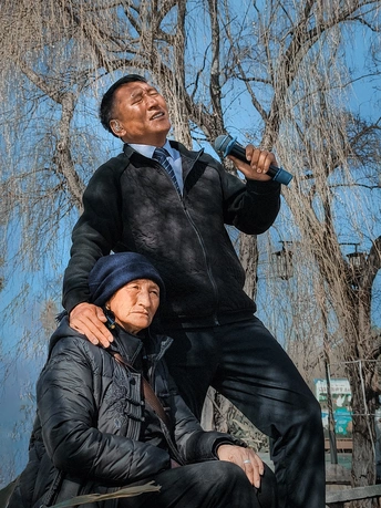 年味,是从老人贴上年画的那一刻苏醒的。他扶着梯子,指尖抚过红纸的纹路,仿佛将一年的盼头都熨帖在了橱窗间。抬眼,金马雕塑静立在城央,驮着整座城的记忆,等我归来。 镜头追着鸥鸟,掠过老人喂食的掌心,也掠过柳树下儿子为母亲献唱的温柔。圆窗里的湖光、火堆上跳动的符纸、寺院中祈福的母女,每一帧都是我不敢惊扰的日常,却也是此刻最奢侈的重逢。 原来故乡从不是一个地点,而是“团圆” 的胶卷。无论走多远,只要快门按下,那些散落在街头巷尾的温暖,便会瞬间归。