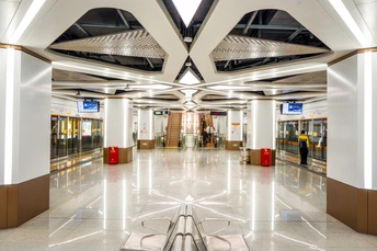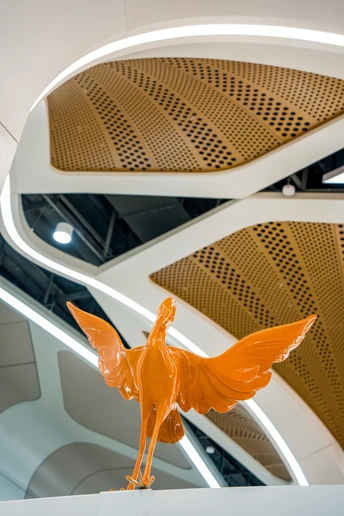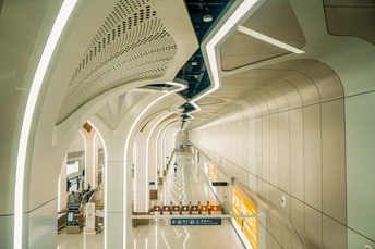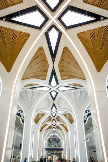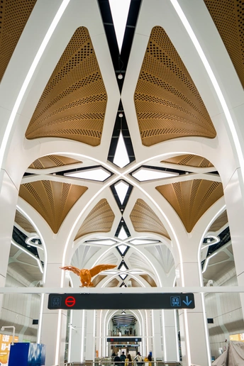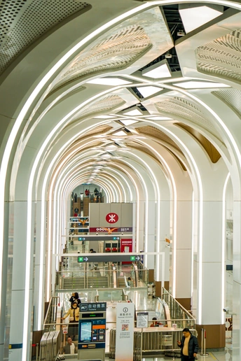 深圳市地铁 13 线石鼓地铁站,被大家誉为“地下艺术宫殿”。当踏入地下的穹堂绮梦,纯白拱顶如教堂般肃穆,金色光影似宫殿般华丽,原来通勤是一场朝圣美学的旅程。眼前几何线条织成教堂式的穹顶,让我在地下宫殿里,撞见了未来与自然的神圣浪漫。