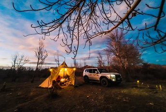 黄昏时刻,逃离城市,一人一车一狗的户外生活。