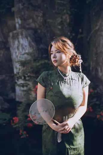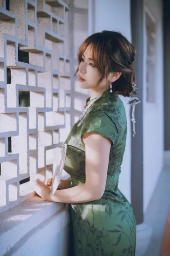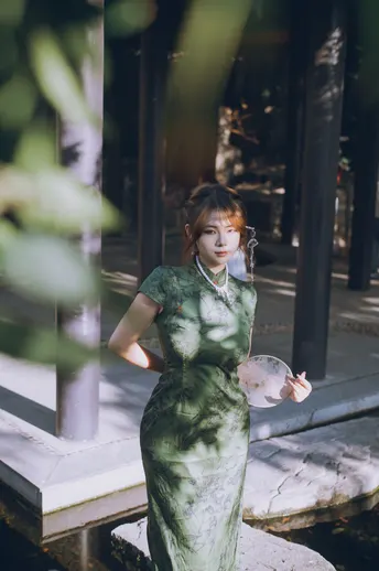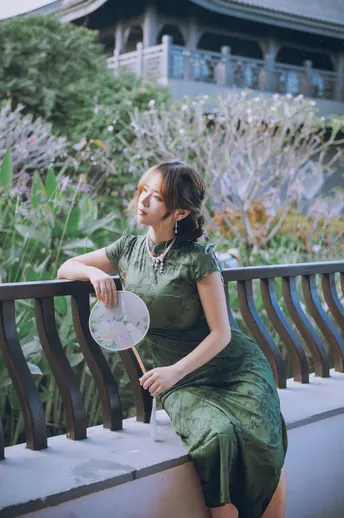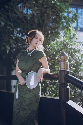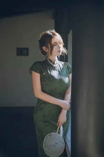 一袭墨绿旗袍把清冷感刻进骨子里