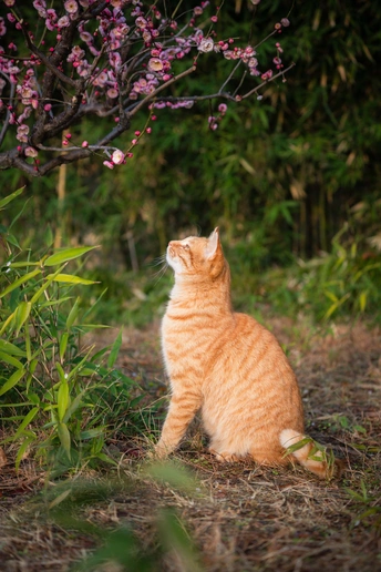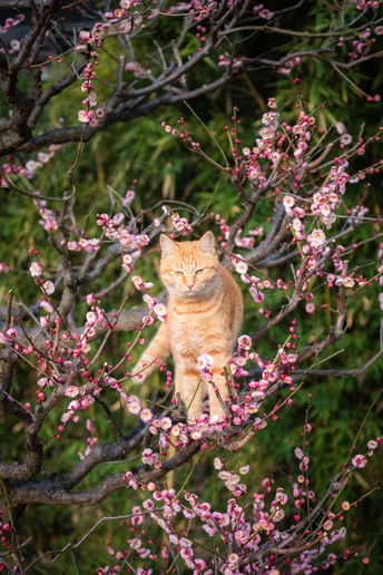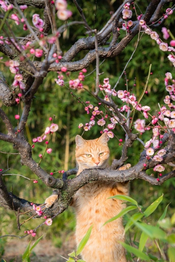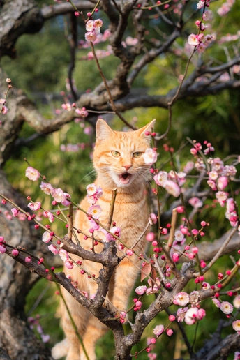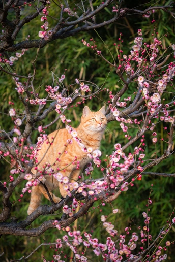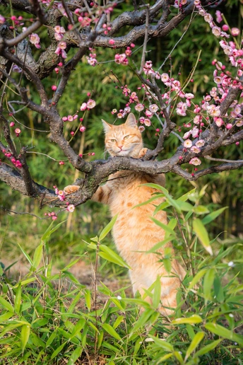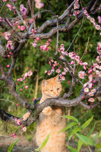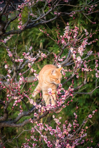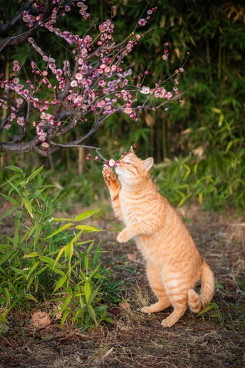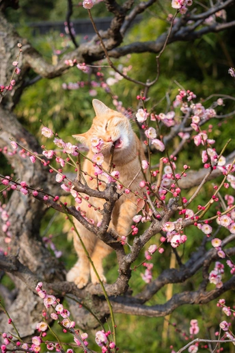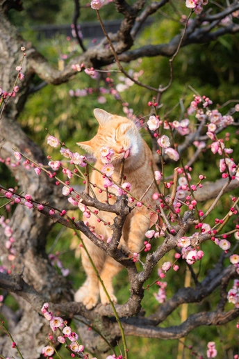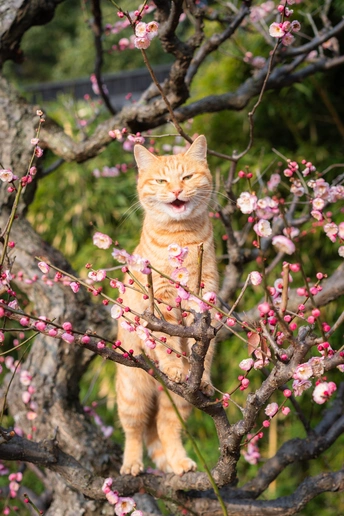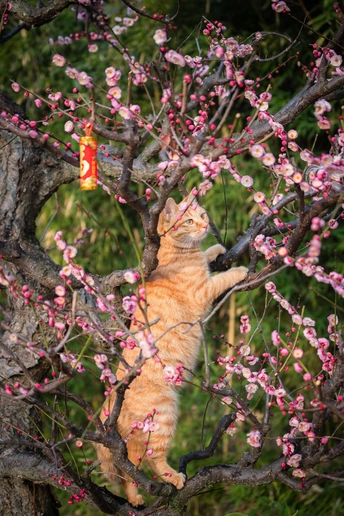 嗅花,爬树,抓福,卖萌,啃树枝一气呵成。是个会营业的好猫,奖励罐罐一个