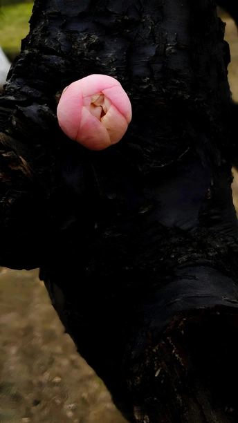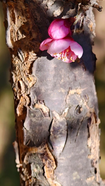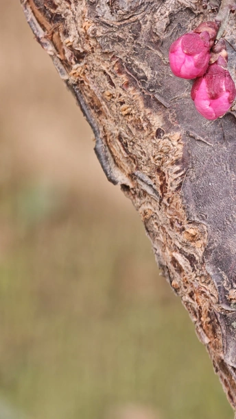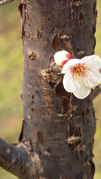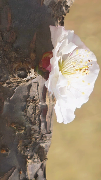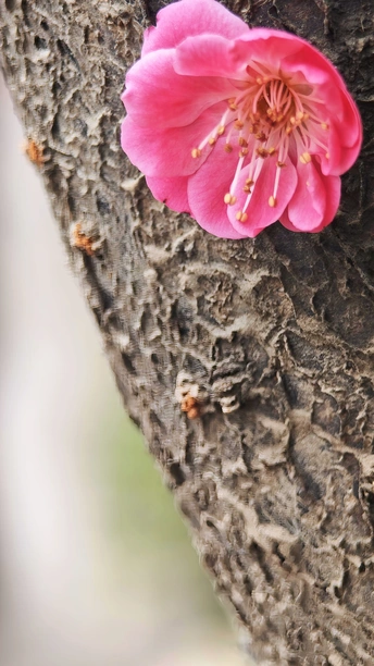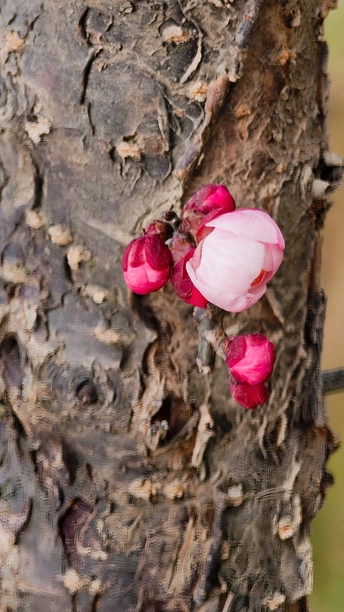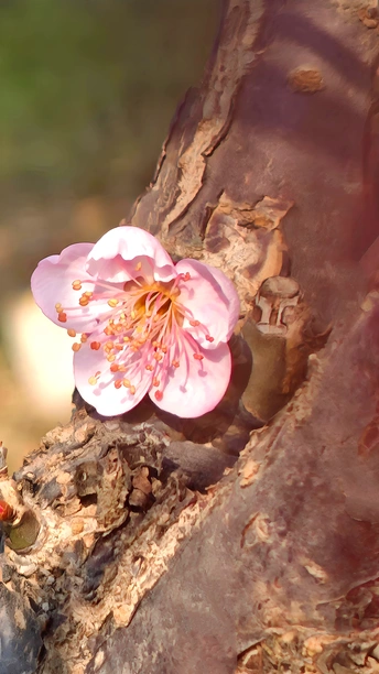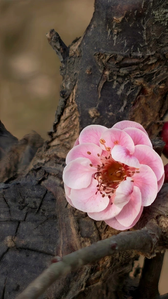 每一颗老桩的梅花树上,总有一颗孤傲的梅花,决绝的盛开在那里。黝黑的树干上,花朵惊艳、将“梅开五福”的意境浓缩于方寸之间!