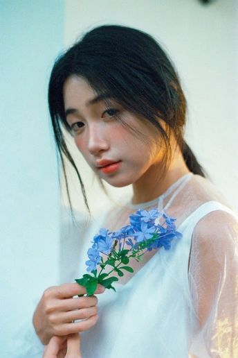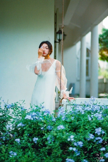 蓝雪垂垂,薄衫浅浅。风过时,一树清影碎在你眉弯。 是那种恰好的蓝,淡得像要化进空气里,浓得又刚好染透春天。你伸手接住飘落的花瓣,也接住了整个午后的光。 少女与花,都是人间温柔。快门轻响,把稍纵即逝的瞬间,变成不会褪色的诗。 出镜:小仪 配方:尼康F100|富士C200C400|尼康58/1.4G|自冲洗(卤化一切C-41)|自扫描(Plustek OpticFilm 8100)
