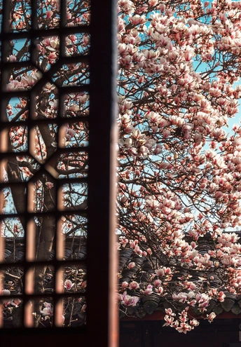 终是在金华寺,邂逅了一场玉兰的诗意盛宴。 踏入古寺,那满树的玉兰,宛如从天而降的仙子,轻盈地栖落在枝头。洁白如雪的花瓣,似是用月光织就的锦缎,在微风中轻轻摇曳,散发着若有若无的芬芳。