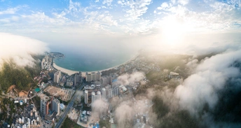 当第一缕天光刺破云海,湾区的轮廓在云雾翻涌中缓缓苏醒。山与海在此相拥,城与云在此共生,高楼刺破雾霭,公路蜿蜒如带,勾勒出这片土地蓬勃的生命力。这是被自然偏爱的一隅,也是向未来生长的城