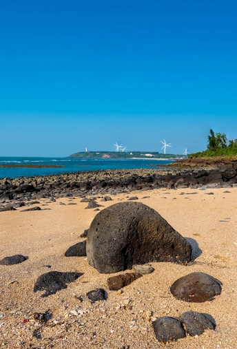 儋州峨蔓镇,遍布火山石的地质海滩。