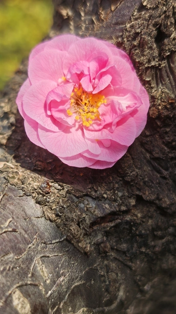 一朵柔粉黄蕊如星,粗糙的树皮,柔嫩花颜,它是刚与柔的碰撞。