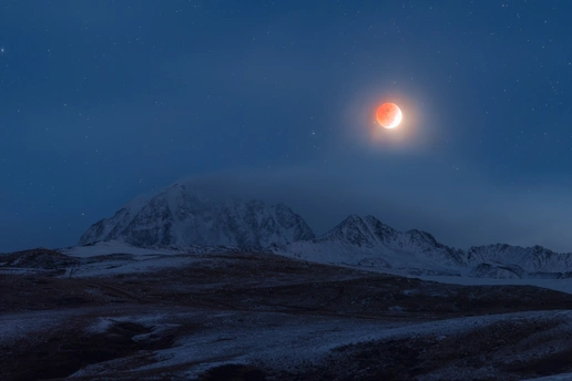 2026.3.3日,时值月全食,我在甘孜州,拍到了雅拉雪山上的红月亮。